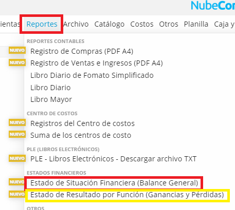 2.- Emite un reporte de Estado de Situación Financiera y Estado de Resultados